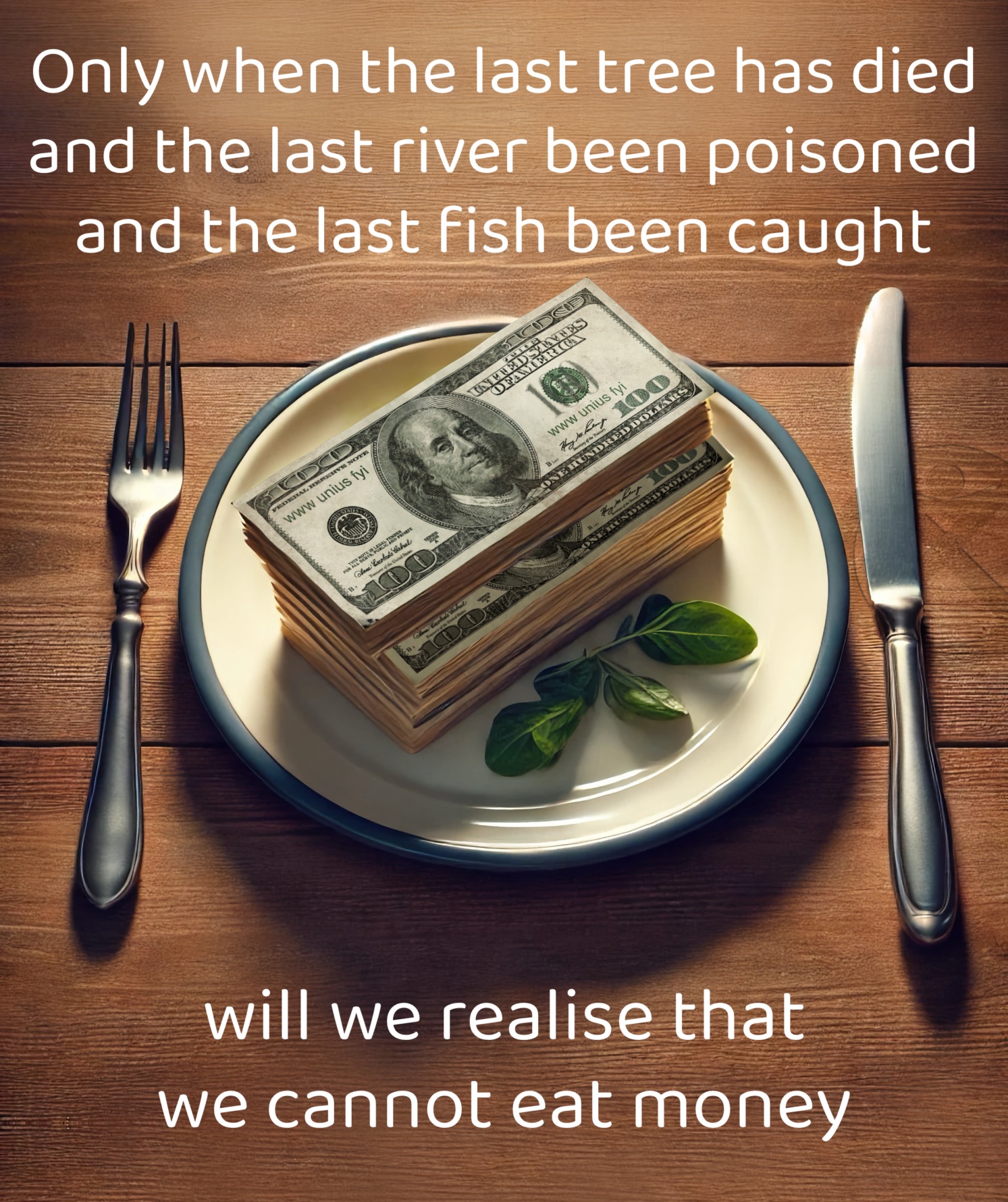 The phrase ‘survival of the fittest’, is often misused to justify the idea of ‘survival of the strongest’, as if strength were the measure of survival. But ‘fittest’, in the context of survival, means the most fitting for the environment. Our pursuit of power, wealth, status, and our short-term preoccupation for self-indulgence, is absolutely incongruous if we are to have any prospect of a positive future. It will be the rich who will try to survive our mindless destruction of the planet, by fighting over the dwindling resources and shrinking habitable land, until the climate is too extreme for anything to survive. It is a pathetic and fatal strategy that could easily be avoided if we were to develop our brilliant intelligence and nature-given sense of moral responsibility.